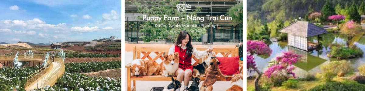09h30: Đoàn khởi hành tham quan nông trại cún Puppy Farm, Quý khách có thể tham quan, vui chơi chụp ảnh cùng với những chú cún dễ thương được nuôi dưỡng bài bản, kết hợp tham quan những đồi hoa với nhiều loài hoa đua sắc, cho du khách cảm giác lạc vào không gian hoa bao la, bát ngát và quý khách có thể tham quan cả vườn dâu công nghệ cao, vườn cà chua cherry, dưa pepino, dưa lưới, dưa leo baby, bí khổng lồ…