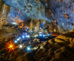 08h00: Xe đón đoàn khởi hành đi tham quan Động Thiên Đường – Ngồi xe Golf vào Động Thiên Đường, khám phá vẻ đẹp huyền bí của động khô dài nhất Châu Á, là kỳ quan thiên nhiên của thế giới với những tuyệt mỹ của tạo hóa ban tặng. Quý khách sẽ có cơ hội trải nghiệm từng cung bậc của chốn bồng lai tiên cảnh, thiên đình.