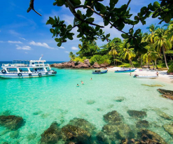 11h30: Quý khách dùng cơm trưa trên tàu với các món hải sản vùng biển. Sau đó tàu đưa Quý khách về Bãi Sao – bãi biển trắng mịn, tắm biển, nghỉ ngơi.